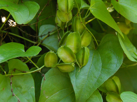 花色:緑黄、花冠:六弁花、花期:夏秋、科名:ヤマノイモ科ヤマノイモ属、分類:蔓性多年草